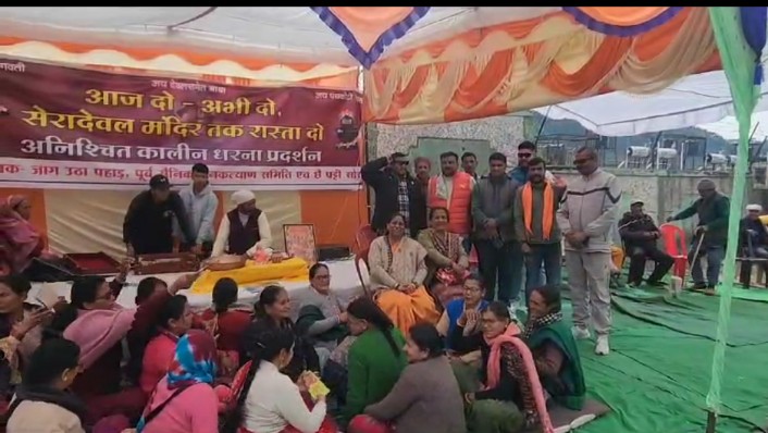 कासनी में सेरादैवल मंदिर के रास्ता खुलवाने पर तीसरे दिन धरना प्रर्दशन जारी