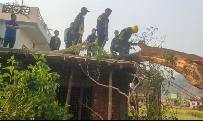कपकोट तहसील के हाम्टी कापड़ी गांव में रात को आए भंयकर तूफान से दो भाइयों के मकान की छत उड़ गई। परिवार के लोगों ने किसी तरह अपने मुश्किल हालात में बच्चों को सुरक्षित जगह पर पहुंचाया।