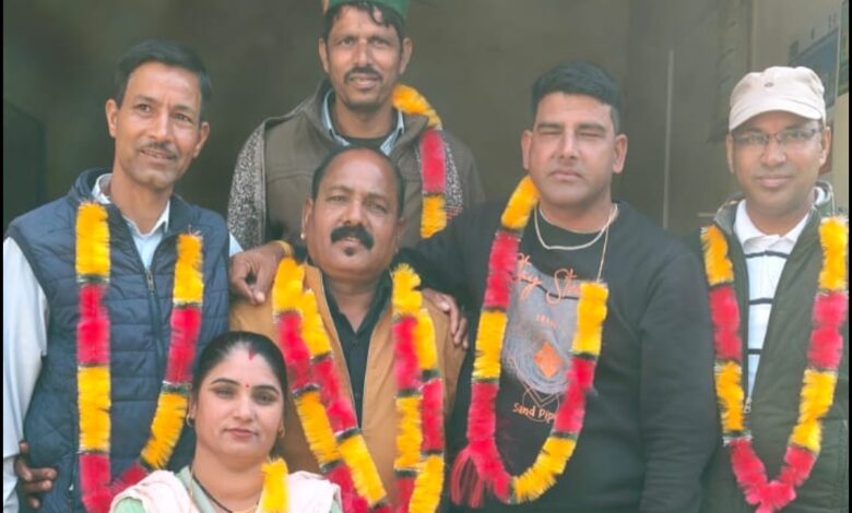 फोटो – नैनबाग के परोगी में सहकारी समिति के नवनिर्वाचित पदाधिकारी ।