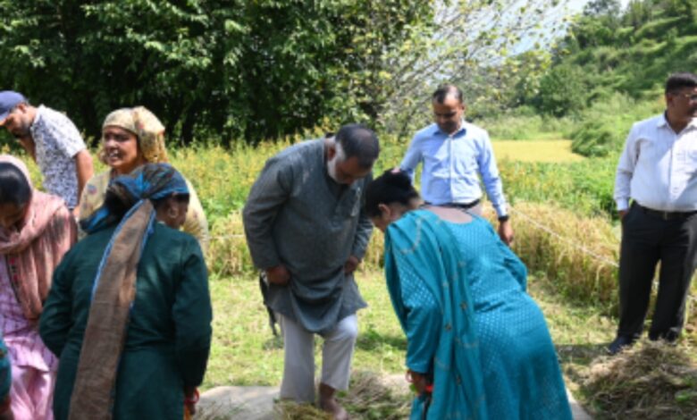 टिहरी जिलाधिकारी मयूर दीक्षित धान की फसल की क्रॉप कटिंग