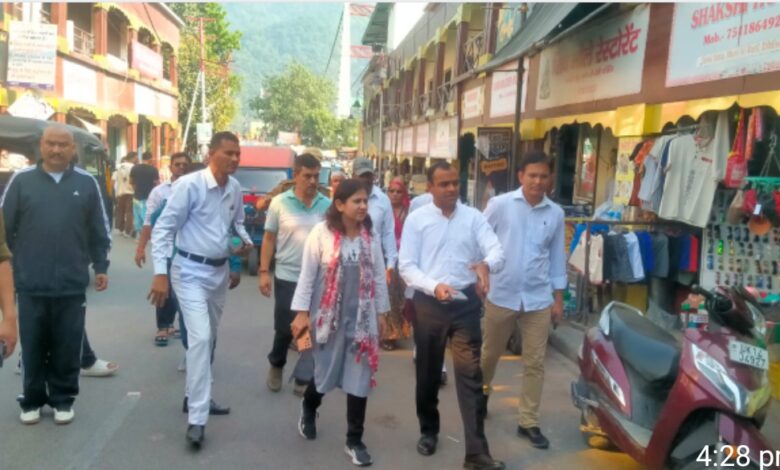 आगामी त्यौहारी सीजन के चलते जिलाधिकारी द्वारा नगरपालिका क्षेत्र मुनि की रेती में साफ-सफाई, निर्माण एवं सौन्दर्यीकरण कार्यों को लेकर किया गया स्थलीय निरीक्षण।