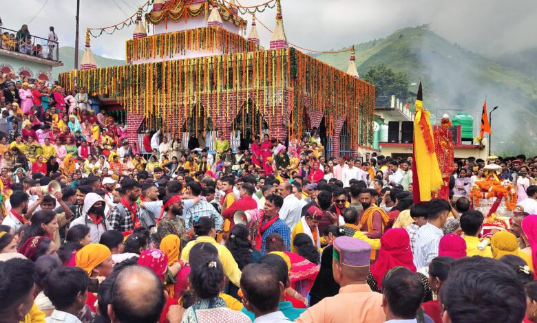 इसी बीच हेलीकॉप्टर से देव पालगी व भारी संख्या में पंहुचें और श्रद्वालुओं के उपर पुष्प वर्षा होने पर दूर दराज क्षेत्र से आए श्रद्धालु ने हर्ष जताया ।