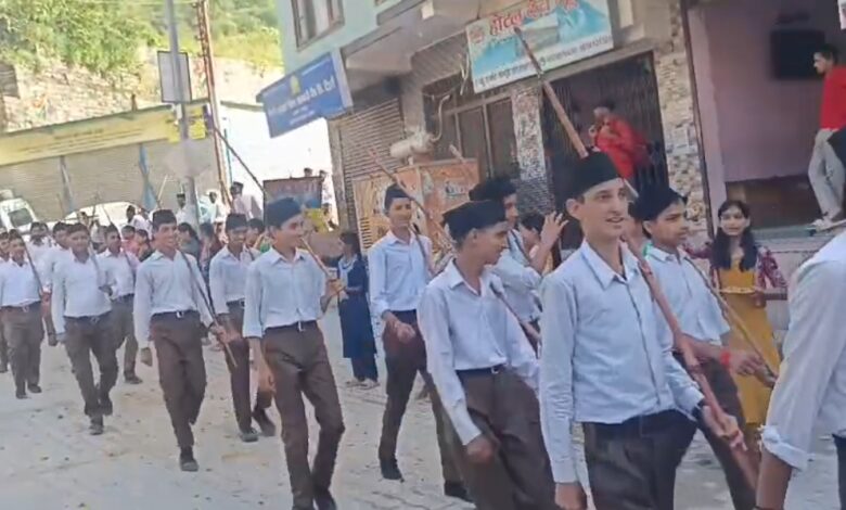 राष्ट्रीय स्वयंसेवक संघ ने मुख्य बाजार थत्यूड़ में निकाला पथ संचलन