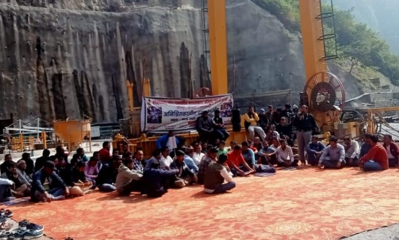 शनिवार को 300 मेघावाट लखवाड़ बांध बहुउद्देशीय परियोजना के लोहारी कुणा में प्रभावित कास्तकारों का संयुक्त संघर्ष मोर्चा के तत्वाधान मं अनिश्चितकालीन धरना प्रदर्शन कर शासन प्रशासन के खिलाफ जमकर नारे बाजी की ।