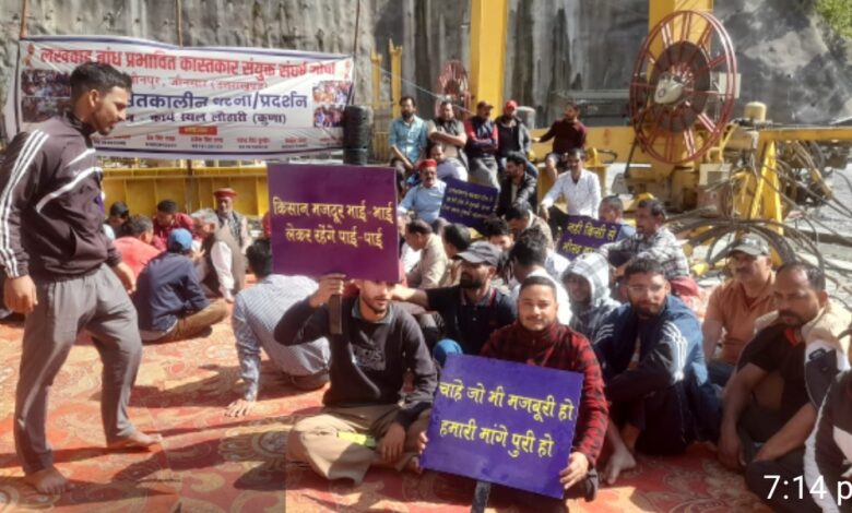 शुक्रवार को तहसील नैनबाग के तहत तीन विधान सभा क्षेत्र की परघि में 300 मेघावाट लखवाड़ बांध बहुउद्देशीय परियोजना के लोहारी कुणा में संयुक्त संघर्ष मोर्चा का अनिश्चितकालीन
