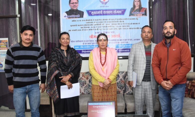 महिला सशक्तिकरण एवं बाल विकास मंत्री रेखा आर्या ने मुख्यमंत्री वात्सल्य योजना के तहत लाभार्थियों को 3 करोड़ 5 लाख रुपए से ज्यादा की धनराशि जारी की।