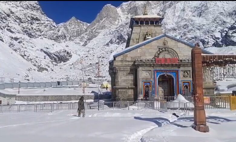 केदारनाथ में जमकर हुई बर्फवारी, पैदल मार्ग से 15 मार्च से हटाई जाएगी बर्फ